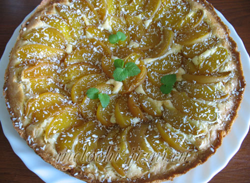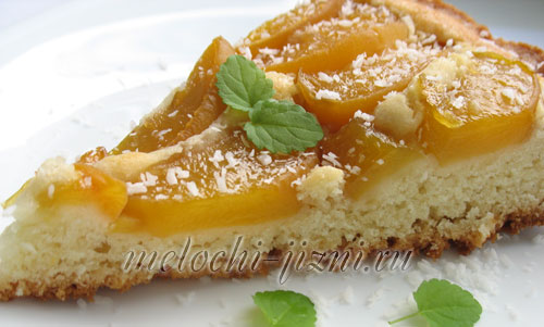 Подавайте ніжний пиріг з персиками з холодним молоком або кавою. Приємного апетиту!