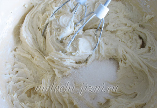 По одному, щоразу добре збиваючи суміш міксером, введіть яйця.