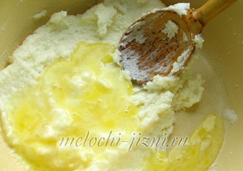 Всипте борошно та розпушувач, замісіть м'яке однорідне тісто.